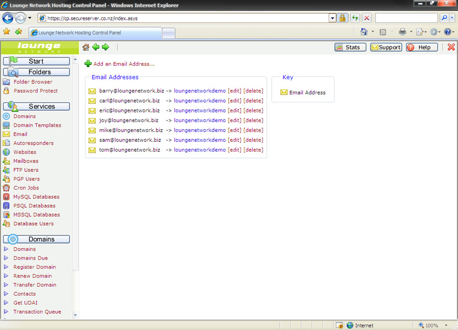 Setup email addresses, auto responders, and anti spam settings, for each mailbox.